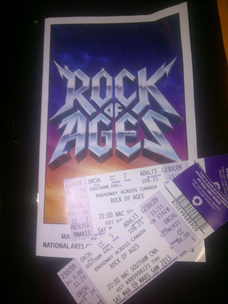 So seeing Rock of Ages last night was something like seeing a concert, it was that amazing. They sang all the great hits of the 1980’s along with the story of two people (Drew and Sherrie) trying to make it big on the Sunset Strip and they meet in the Bourbon Room. Where they go to achieve their dreams leads the audience on one rock and roll featured adventure.