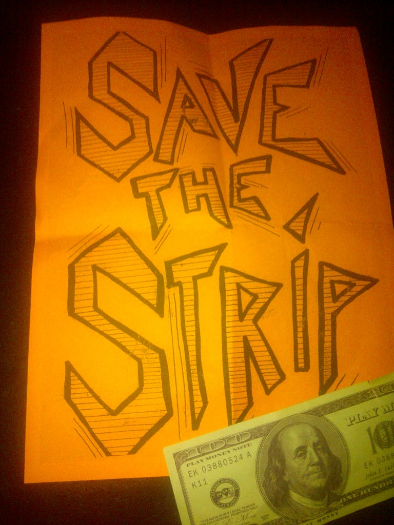 Two props. One from a protest scene and one from another scene. The dollar bill actually says play money. Sweet.