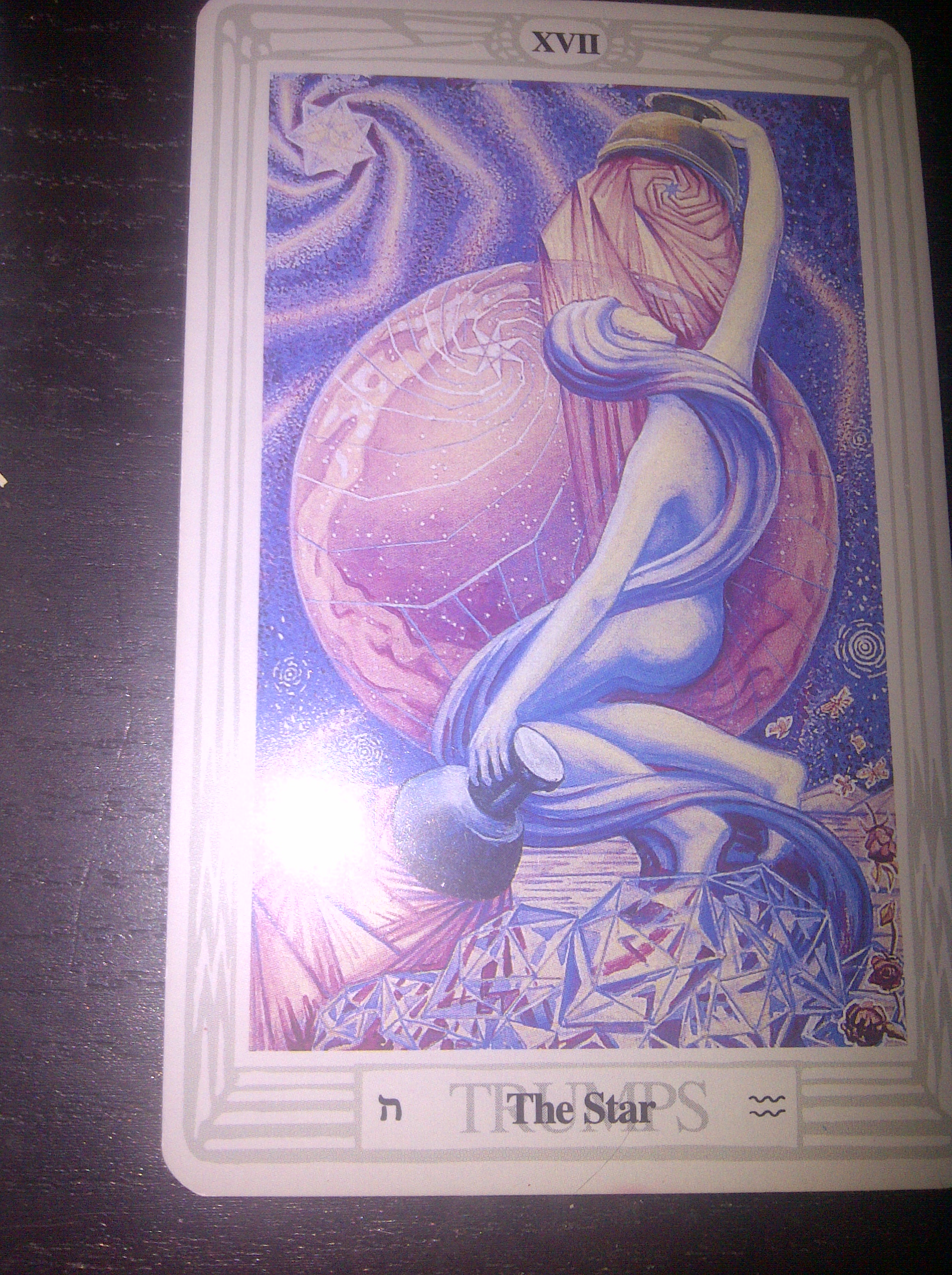 The Star symbolizes hope and faith, of embracing the beneficial nature of the universe. It’s also of looking within your spiritual self, of meditation and reflection. I also see it as a guiding light, shining brightly in the darkness.