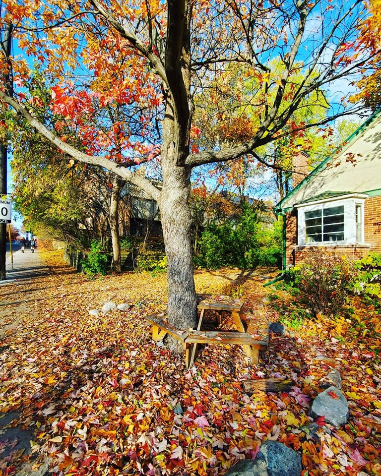 “It took a long time. I had to make friends with the wind and the birds. I have been trying all this time to get back to you. A sweet robin was able to plant me underneath this table so that I could finally regenerate in the earth and become a whole tree again. So that I could see you again.