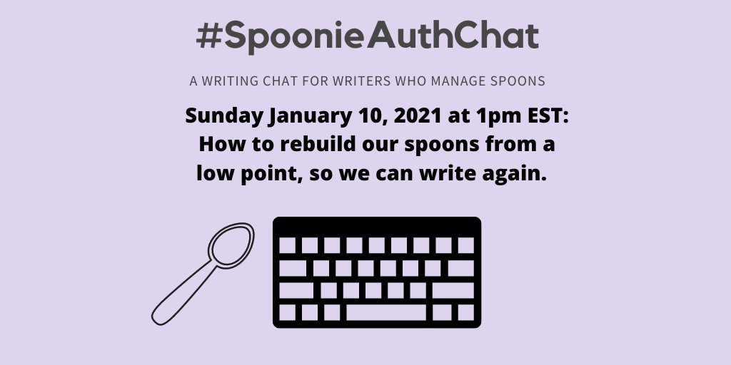 I’ve never done a chat over Twitter, so this will be a first for me. I’ll be answering questions on how to rebuild your spoons and your energy while still trying to be creative.