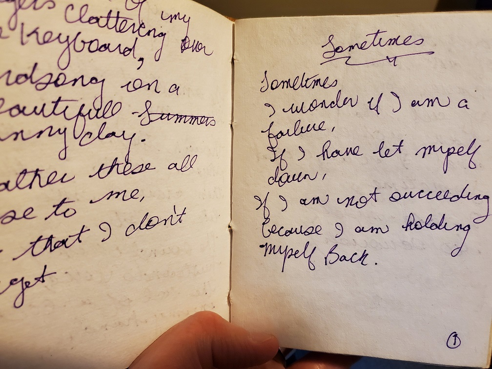 I’ve been asked to confront what writing means to me and what it gives me several times in the past few weeks. I had a novel that was really close to my heart that was rejected. I put my soul and spirit into that book. I had someone make negative comments about my writing on the heels of that rejection and today, I found out that I was screened out of a competition for a writer and editor position that I would have loved and where my writing was found lacking.