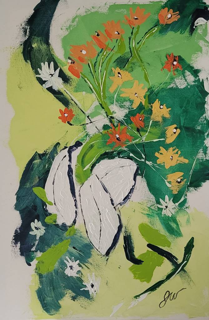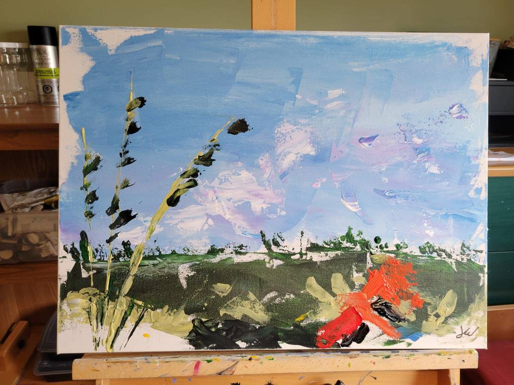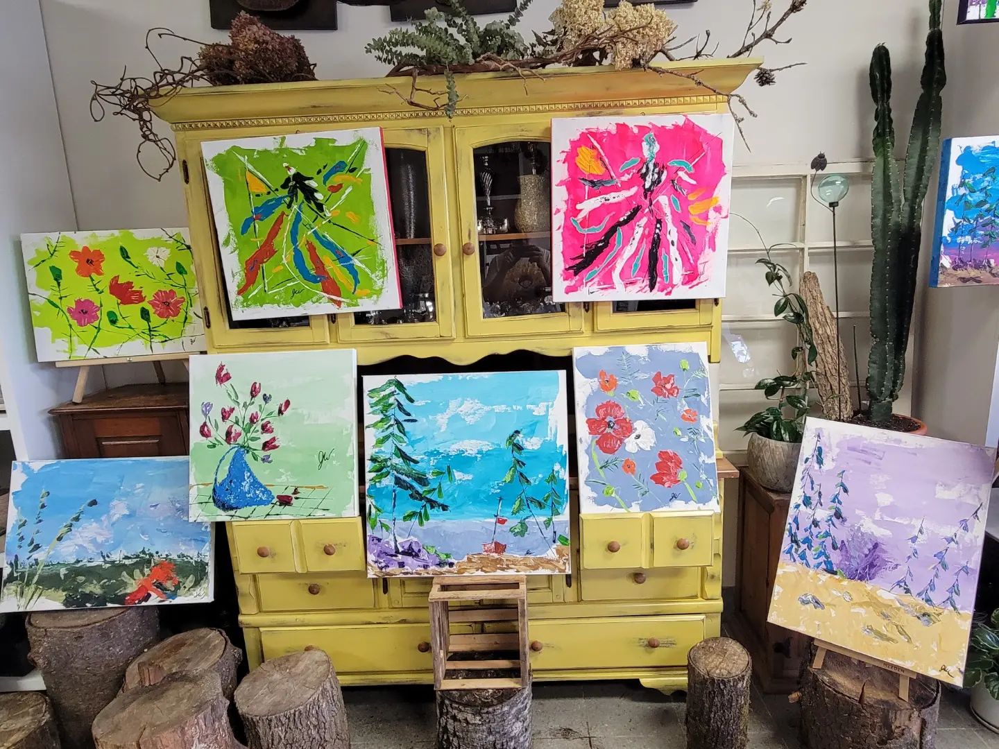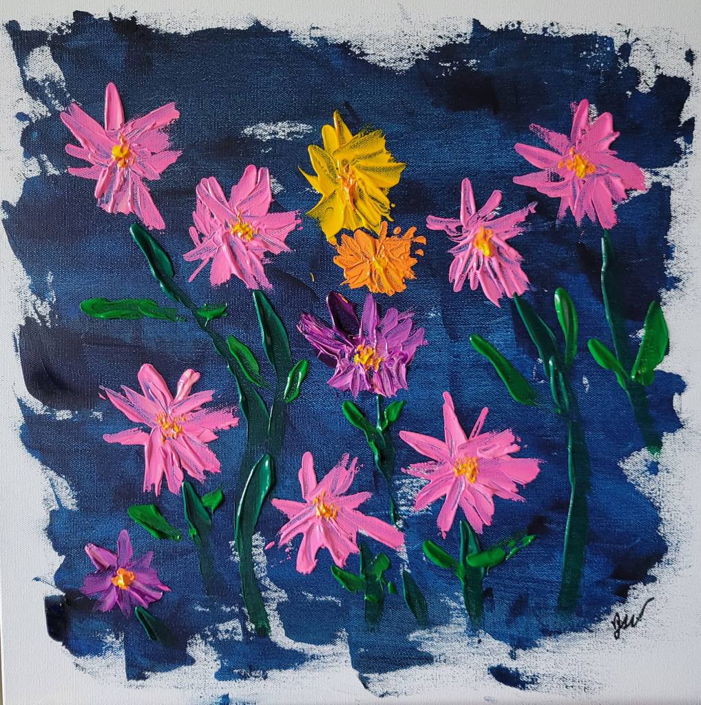 When I was in my twenties, I started working with charcoal, cante and pastels and working on canvases. I had a brief foray into oil paint and did some mixed media pieces. Eventually an art night led me to start working with acrylic paint and after a couple of paint nights, I wanted to see what I could do on my own. I wanted to create my own pieces and see where my brush would take me.