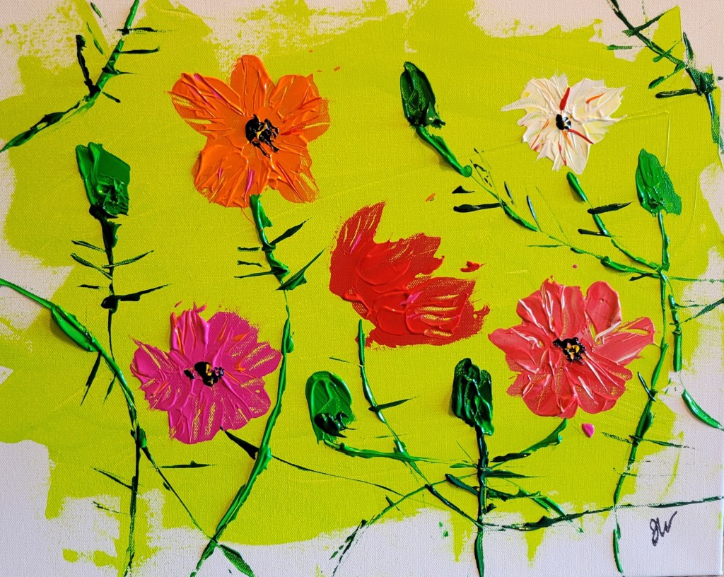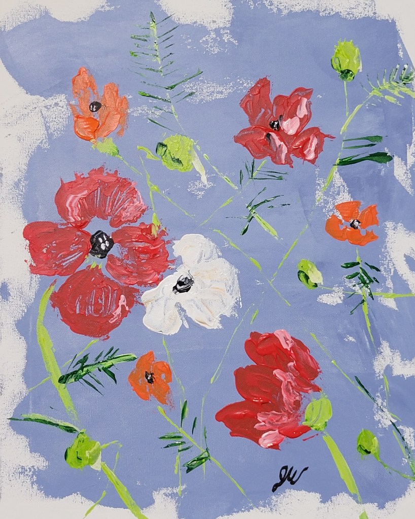 I am an artist through and through, whether with words or with paint. It was a gift to be able to share this day with my three other gifted artists and to realize that this was a world that I fit within. My first art show taught me a lot about myself, and I walked away with a very important lesson learned: It was the canvases sold that was important, but the connection I made with so many people that mattered.It will be something that I will remember every time I approach the canvas.