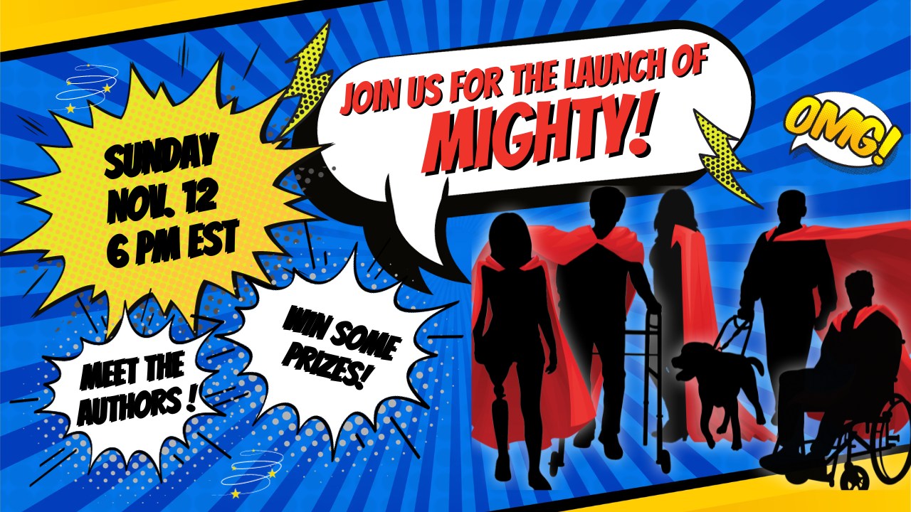 At 6pm Eastern Standard Time today, I will be taking part in the book launch for Mighty! An Anthology of Disabled Superheroes. The book is out on November 15th, and I’m thrilled to have a story in the anthology titled Captain Maven and the Ice Queen.